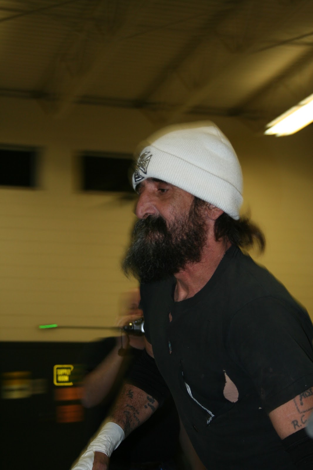 Here is Al Snow who wrestled for WWF in the 90s. He was known best for talking to a severed mannequin head, for some reason he didn't bring the head.