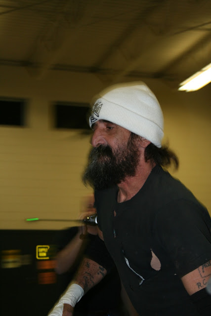 This is probably my favorite local wrestler is the mysterious "Goatboy". He comes out to the ring with "Land Down Under" by Men at Work blaring over the intercom. While wrestling he acts like an actual Goat while his opponent loudly complains that he should not be forced to wrestle and animal.