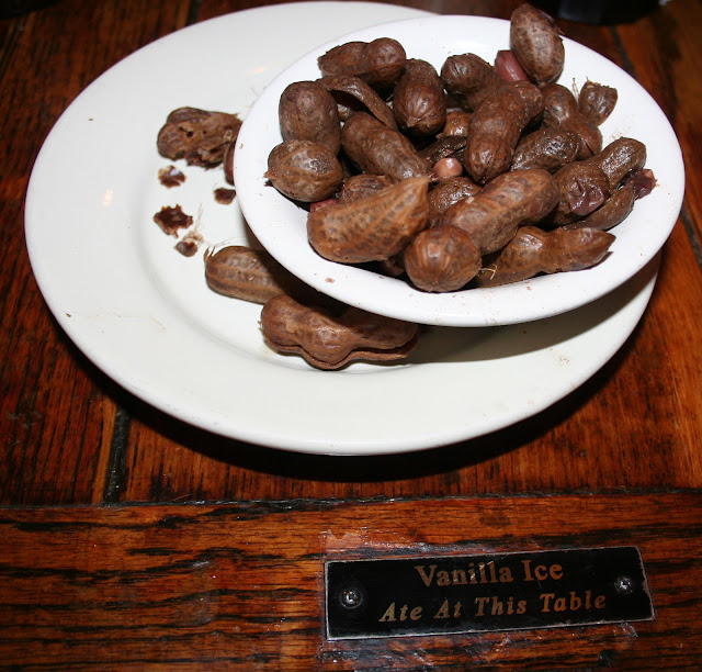 Of course boiled peanuts are not completely isolate to roadside stands. I have to give a shout out to one of my favorite restaurants: Hyman's Seafood in Charleston, SC. They give a bowl of boiled peanuts to every table much like a Mexican restaurant gives chips and salsa. Another cool thing about Hyman's is that it is a hotspot for celebrities and they stamp each table with the Celebrities that have sat at that particular table.