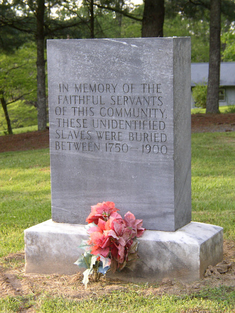 This one always makes me sad. The back corner of this cemetery in Otto, NC is empty of graves stones, but full of strange sunken areas. This marker explains why. Slaves were buried here in unmarked graves. A tribute to the inhumanity that was slavery. Something about the words "Faithful Servants" is a little off putting when you consider that the slaves didn't really have a choice in how "faithful" they were.