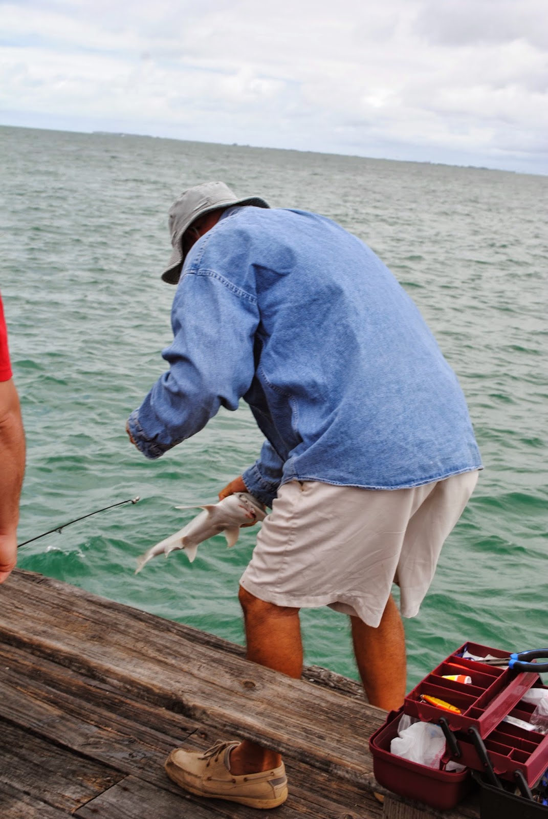 As we watched a large group of fishermen and fisherwomen unsuccessfully waiting for fish. Then suddenly a woman pulls a freaking shark out of the water.