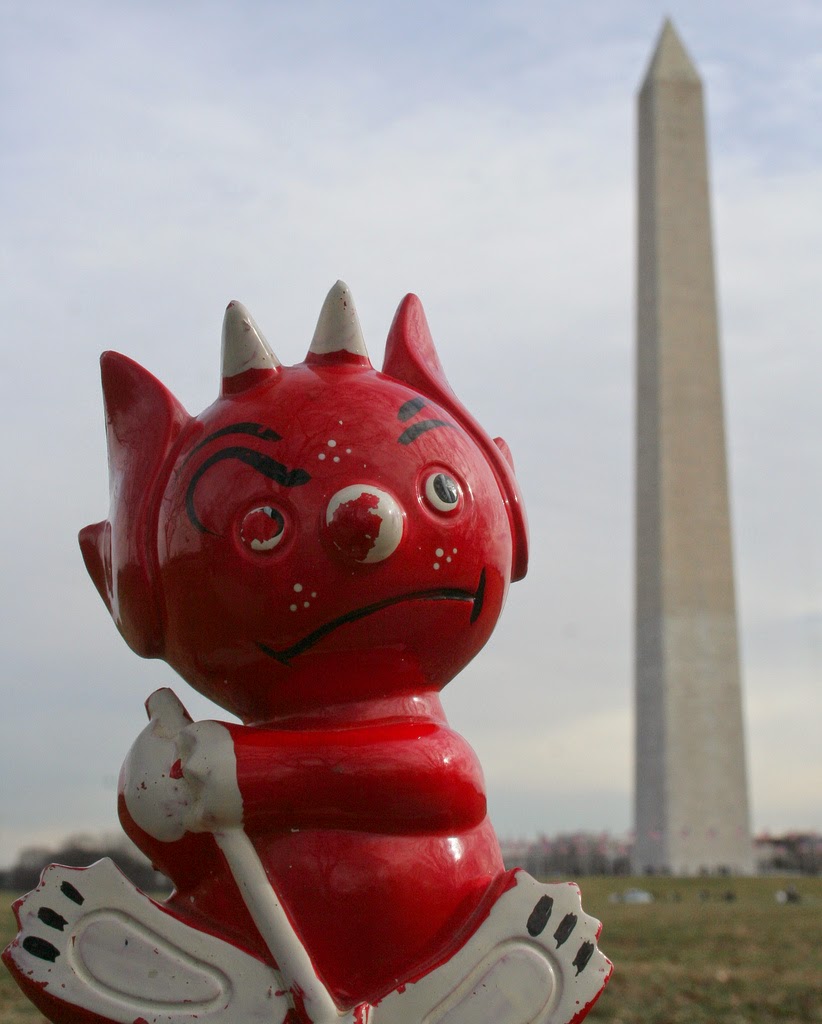 Little Satan joined us on our trip to Disney World, where I road roller-coasters with a porcelain bank in my pocket in order to get these photo Ops.