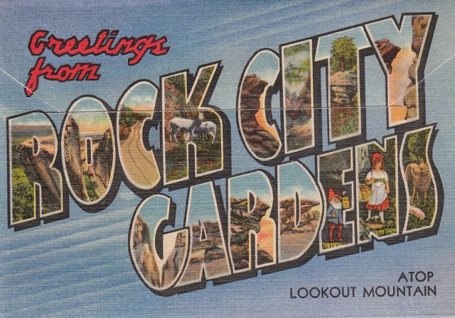 Of course no attraction has produced more wonderful postcards then Rock City in Lookout Mountain, GA (home of its own jumping Indian legend).