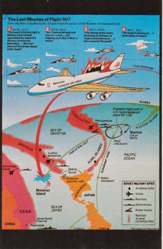 But one of the strangest of all is this postcard that diagrams the crash of Korean flight 007, I'm not really sure what instance you would send this to your mom....