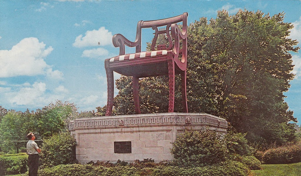 Here's a postcard of the World's Largest Duncan Fyfe Chair in Thomasville, NC, with added tourist to give it scale.