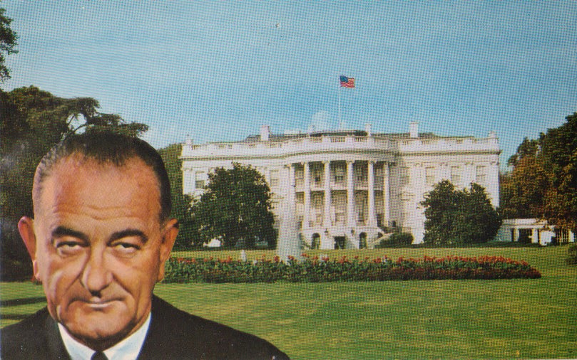 I also love this postcard of Lyndon Johnson leering like a creepy outside of the White House....