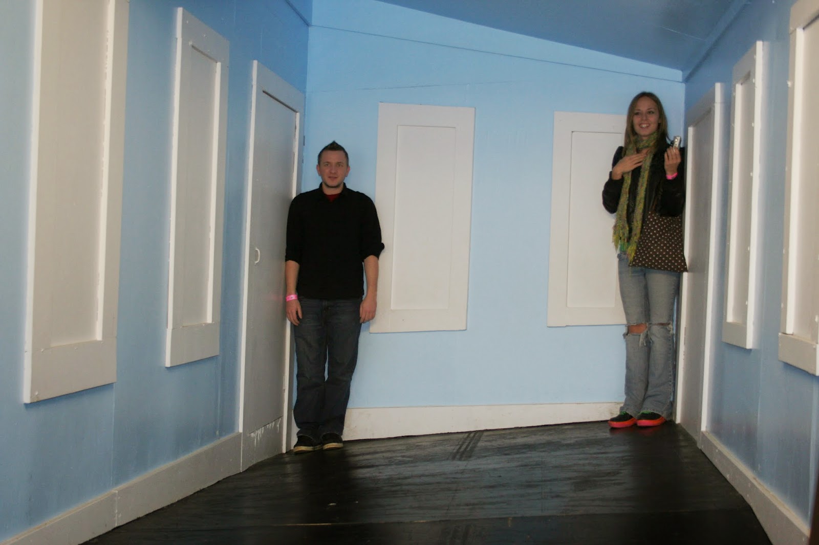 Immediately you realize something is off. Walking in a straight line is difficult your body seems pulled towards one of the walls. The Guide then leads you into his room of tricks. Unexplained illusions include a hallway that makes your girlfriend seem gigantic.