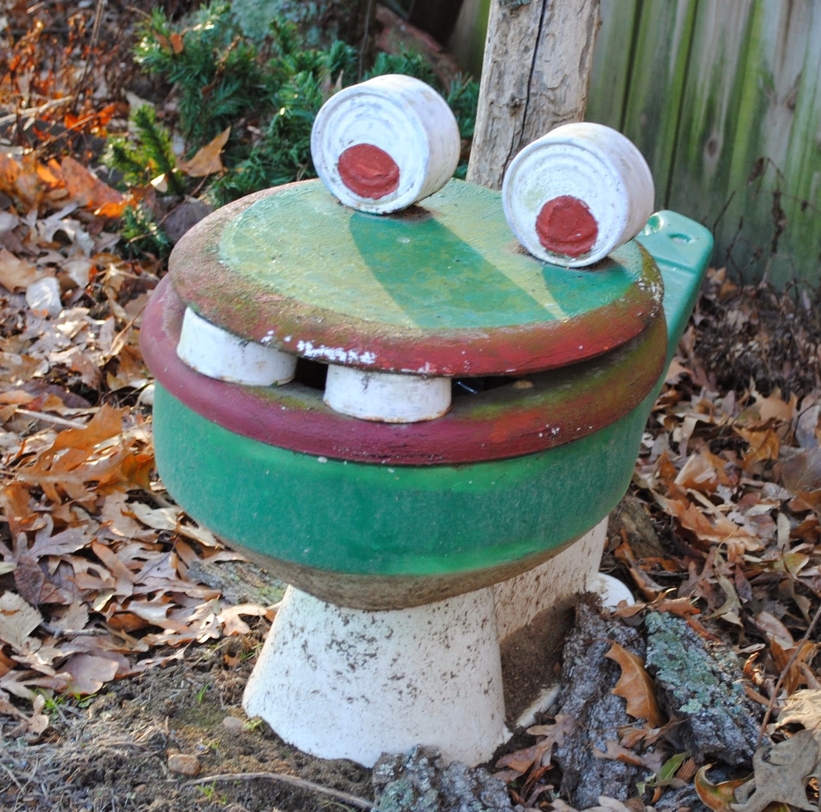 Keith led me to a path in the woods and begin his infamous "Bad Pun Tour". Here all his sculptures take the form of terrible puns.